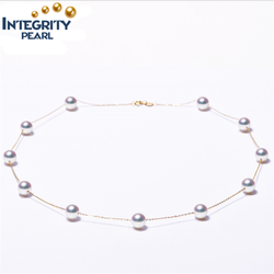 أسعار الجملة 18k الذهب سلسلة قلادة 7 مللي متر لؤلؤ المياه العذبة دائري الشكل قلادة مجوهرات قلادة